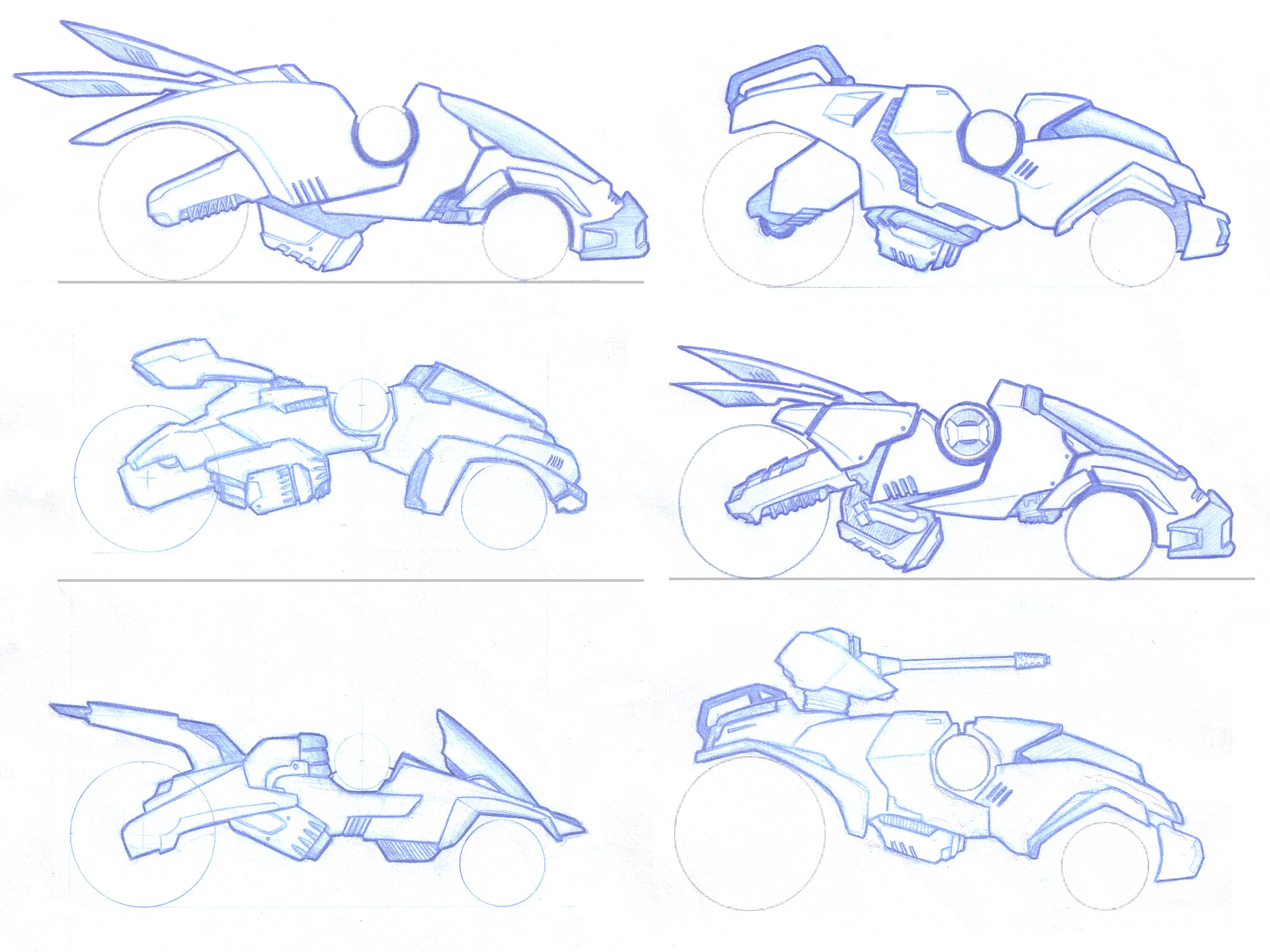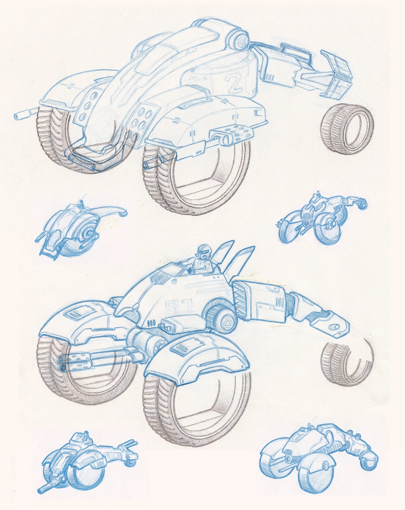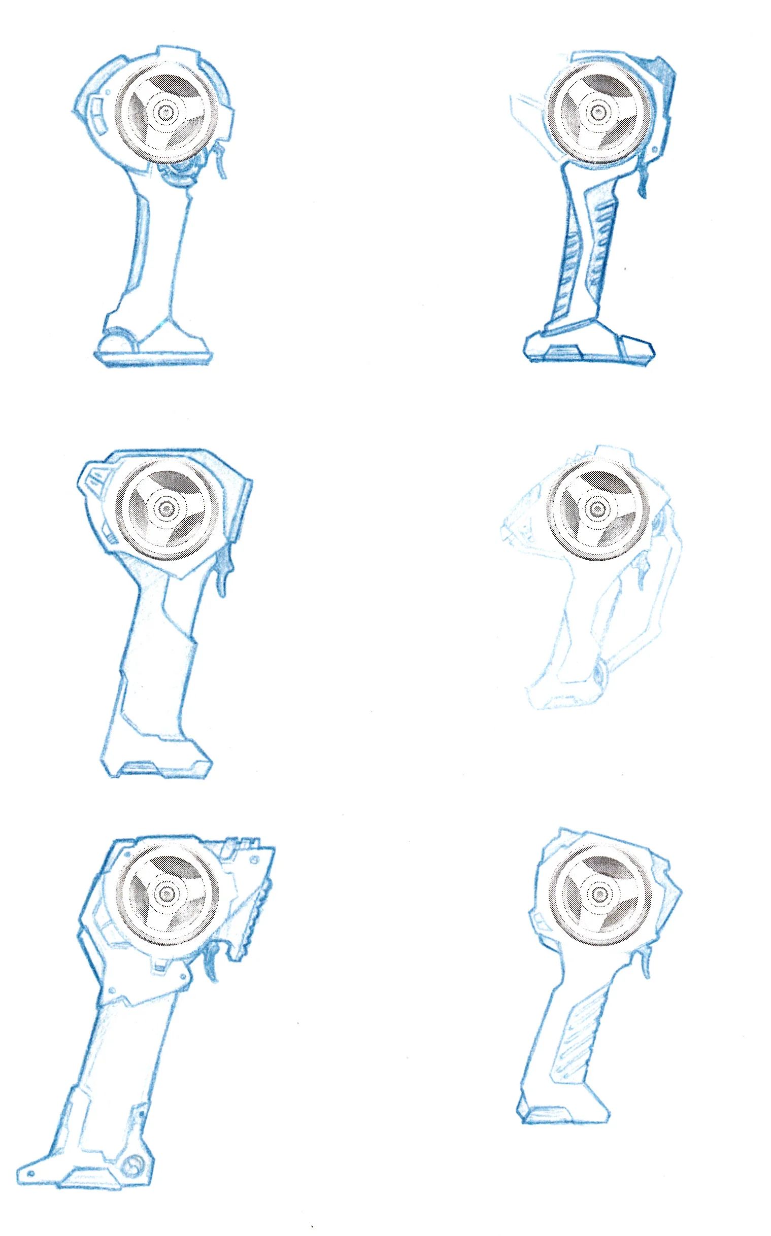These examples show some of the earliest stages of the idea development process and were all hand drawn. I have recently transitioned away from blue pencil and paper in favor of a digital tablet and SketchBook Pro.