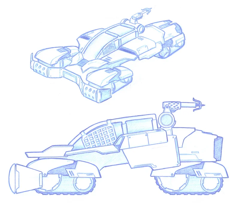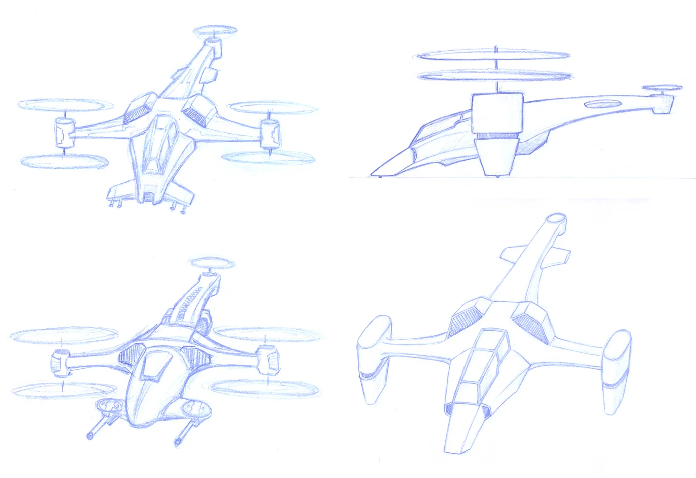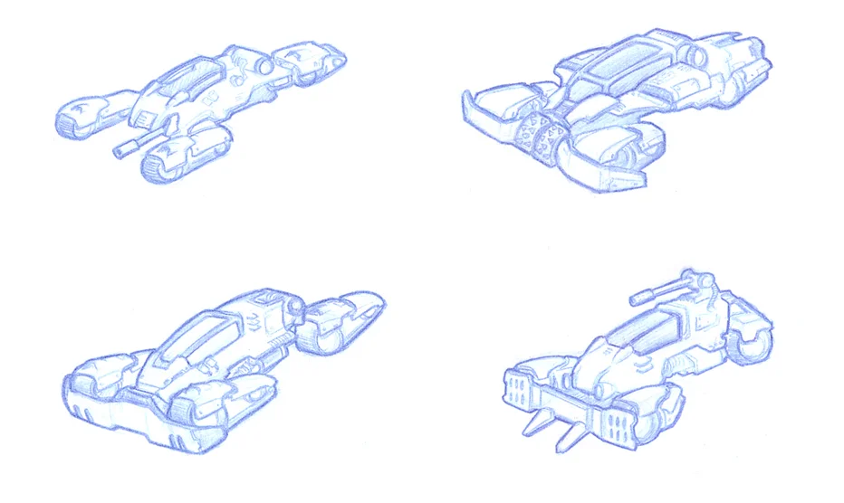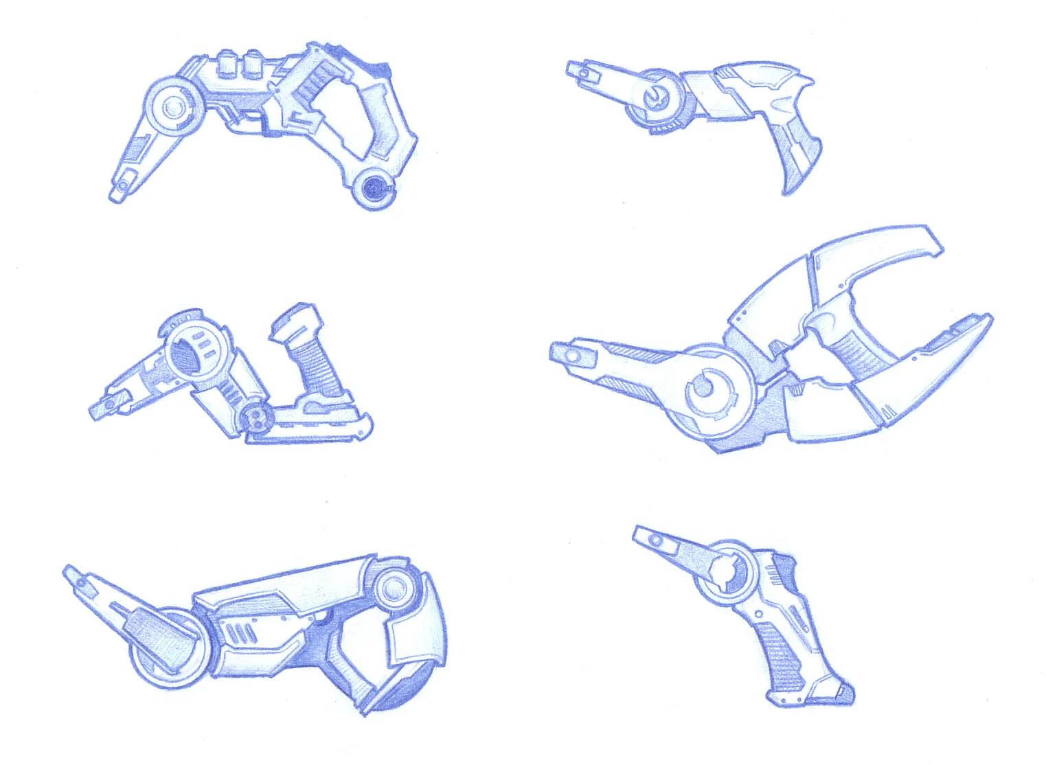 These examples show some of the earliest stages of the idea development process and were all hand drawn. I have recently transitioned away from blue pencil and paper in favor of a digital tablet and SketchBook Pro.